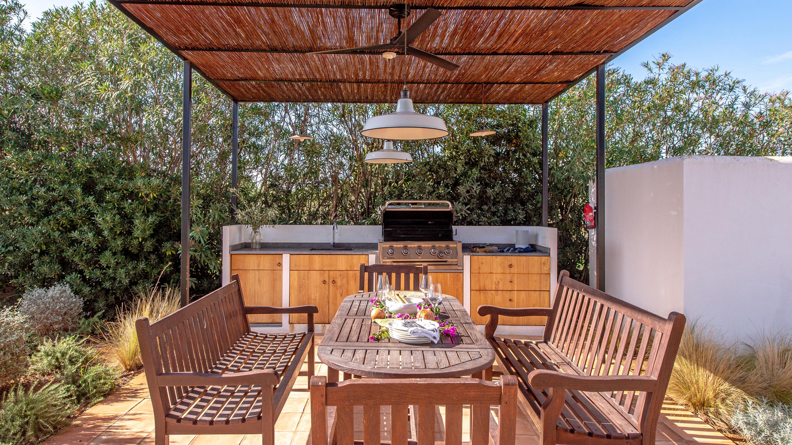 Gli esterni della proprietà mettono in evidenza un'attraente piscina di colore verde che ben si amalgama con il curato prato che la circonda, situazione ideale per far divertire gli ospiti più piccoli. Troviamo a disposizione degli ospiti numerose aree ben attrezzate per il massimo relax, con una piacevole zona pranzo con tanto di BBQ dedicato e un salottino sul tetto, angolo perfetto per gustare un aperitivo prima della cena eventualmente preparata dai nostri cuochi. Per chi volesse godere di un pizzico di privacy in più è disponibile una guest house indipendente posta a debita distanza dal corpo centrale, affascinante con i suoi muri in pietra vista e dotata di tutti i comfort più moderni. Ciliegina sulla torta è la palestra perfettamente equipaggiata e realizzata in un edificio dedicato nel giardino.