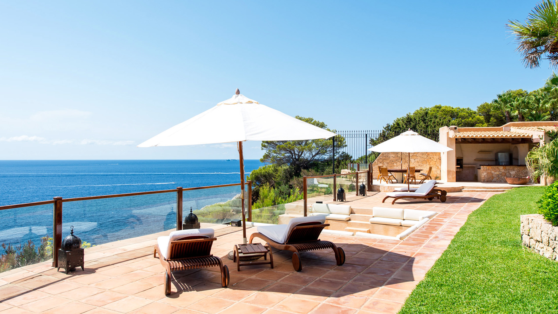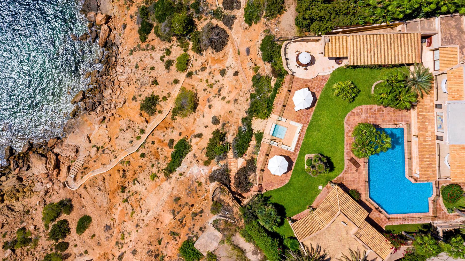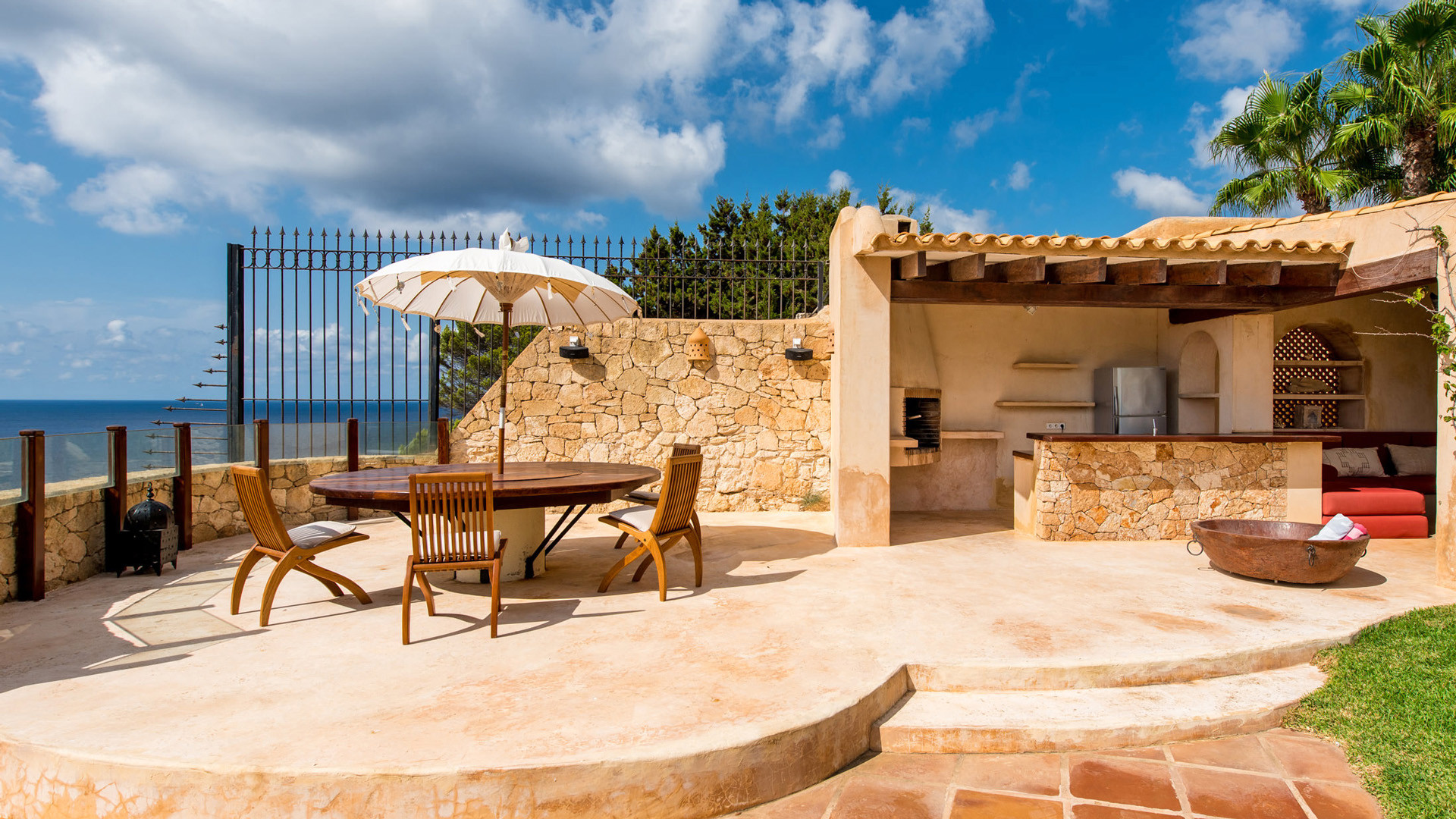 Las Palmeras si presta particolarmente bene per essere vissuta all'aria aperta, oltre alla magnifica vista panoramica e l'accesso diretto al mare tramite una scalinata scavata nella roccia, elementi che da soli varrebbero un soggiorno in questa proprietà, troviamo a disposizione degli ospiti un ambiente godibile e accogliente. La piscina fa bella mostra di se, ben recintata per la sicurezza degli ospiti più piccoli, mentre a breve distanza, in posizione frontale per beneficiare al meglio della vista troviamo un'invitante vasca Jacuzzi per il comfort degli ospiti. Immancabile la zona pranzo all'ombra del porticato, servita da una funzionale cucina esterna.