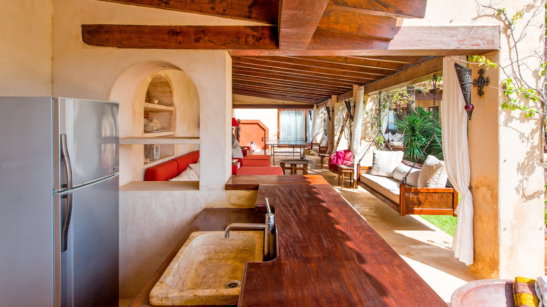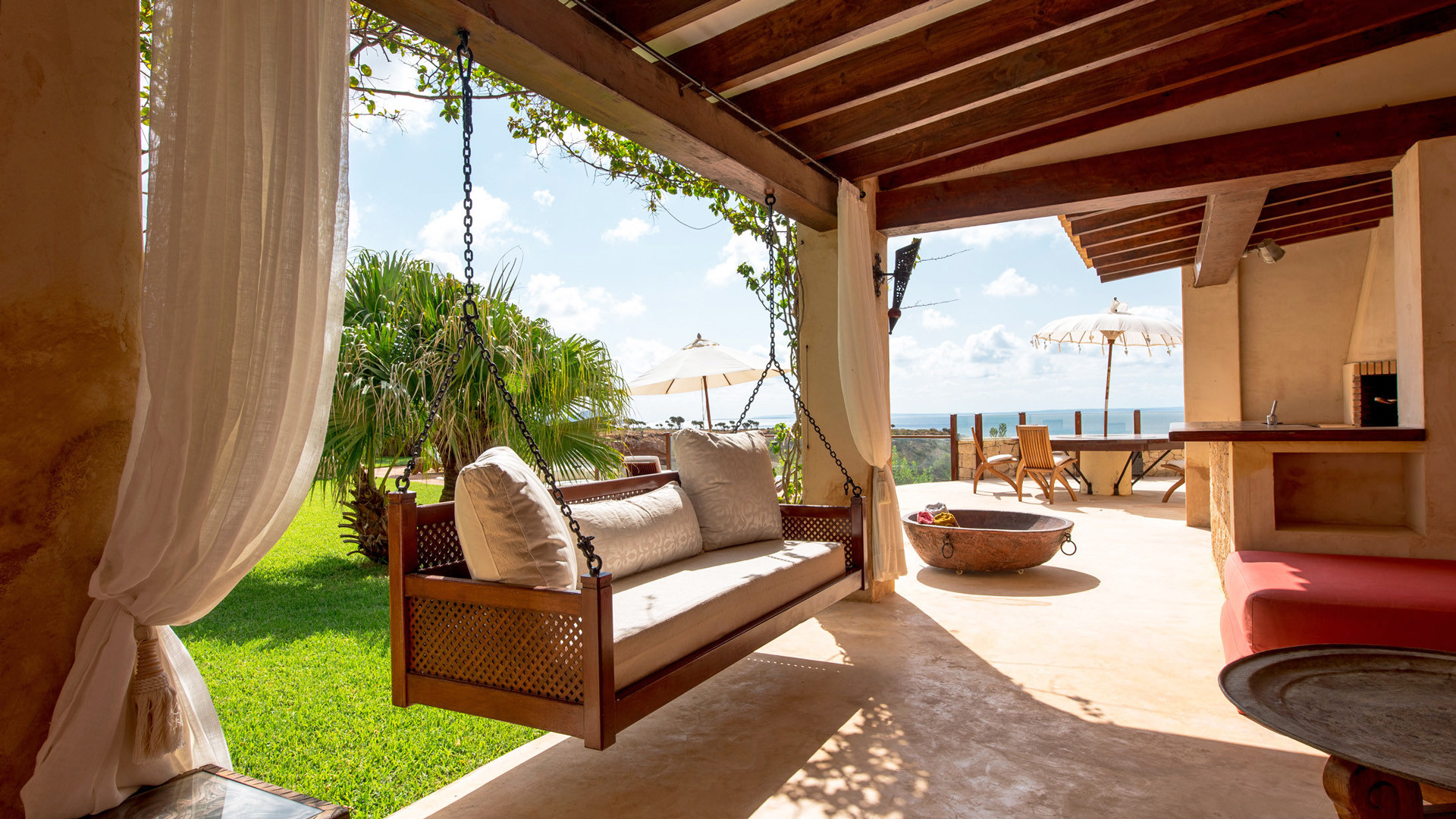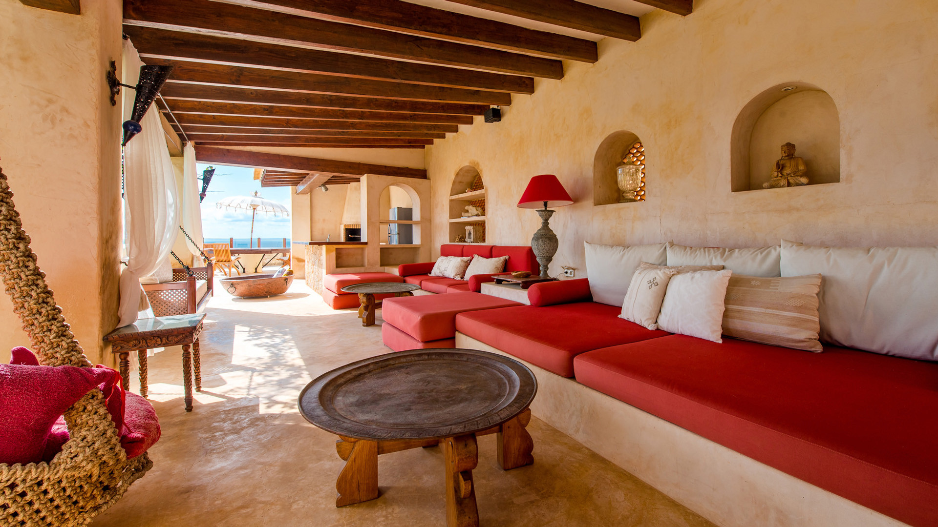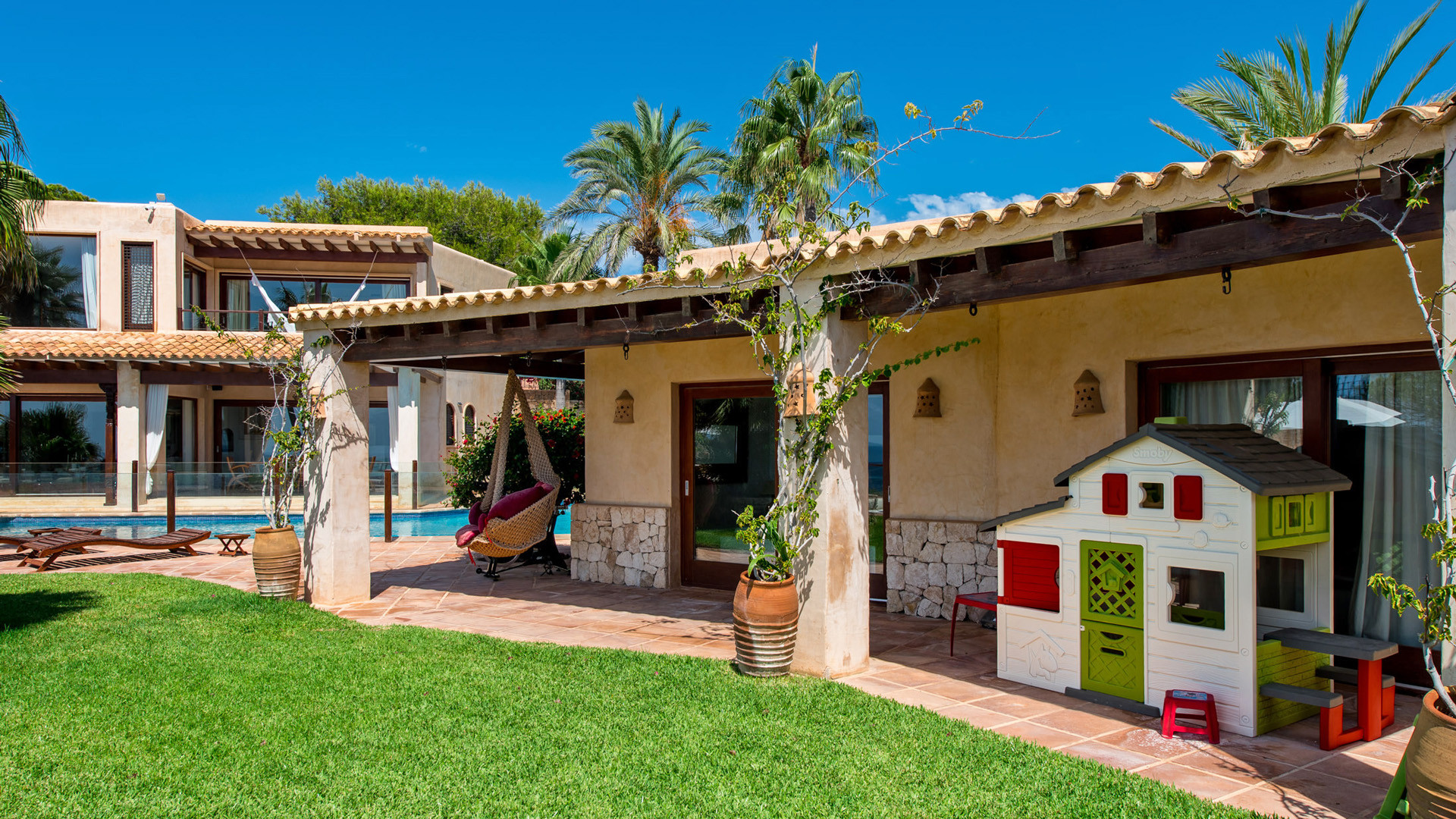 Las Palmeras si presta particolarmente bene per essere vissuta all'aria aperta, oltre alla magnifica vista panoramica e l'accesso diretto al mare tramite una scalinata scavata nella roccia, elementi che da soli varrebbero un soggiorno in questa proprietà, troviamo a disposizione degli ospiti un ambiente godibile e accogliente. La piscina fa bella mostra di se, ben recintata per la sicurezza degli ospiti più piccoli, mentre a breve distanza, in posizione frontale per beneficiare al meglio della vista troviamo un'invitante vasca Jacuzzi per il comfort degli ospiti. Immancabile la zona pranzo all'ombra del porticato, servita da una funzionale cucina esterna.