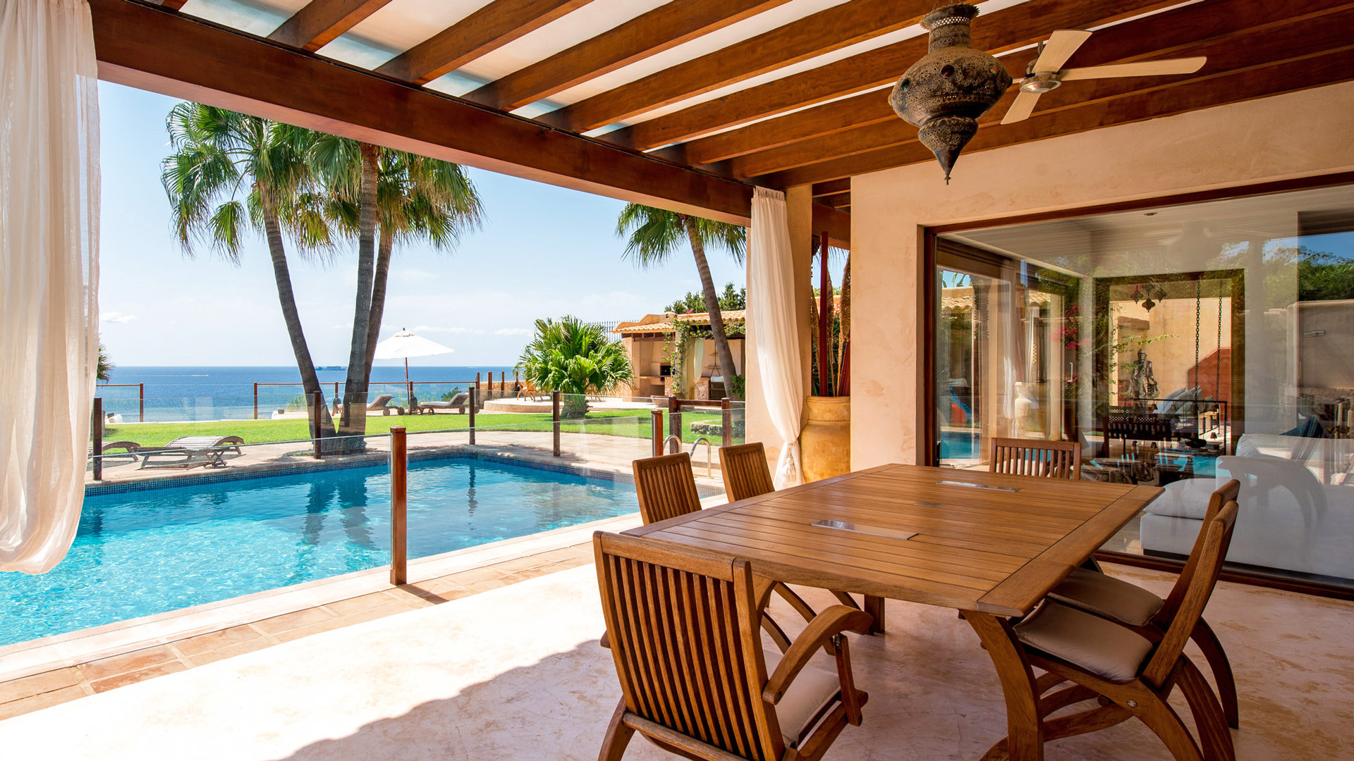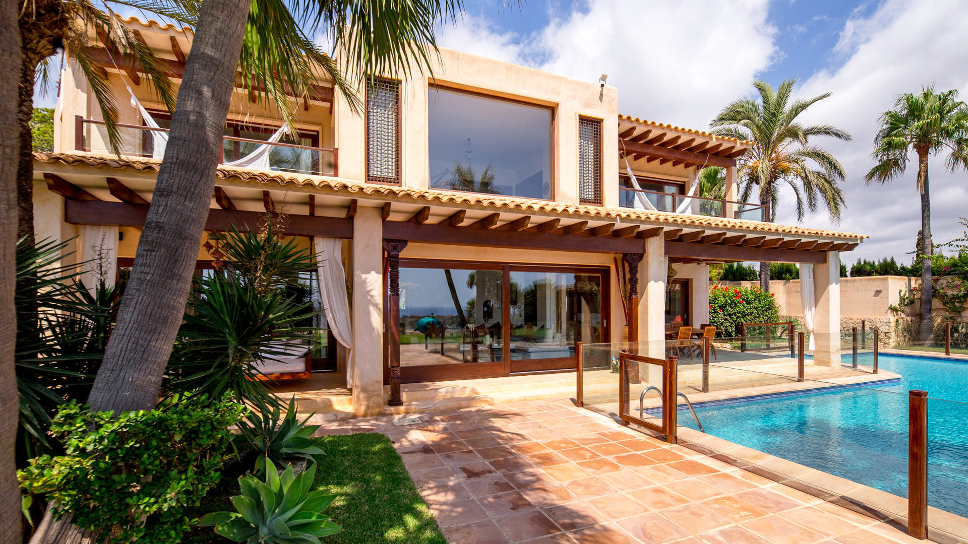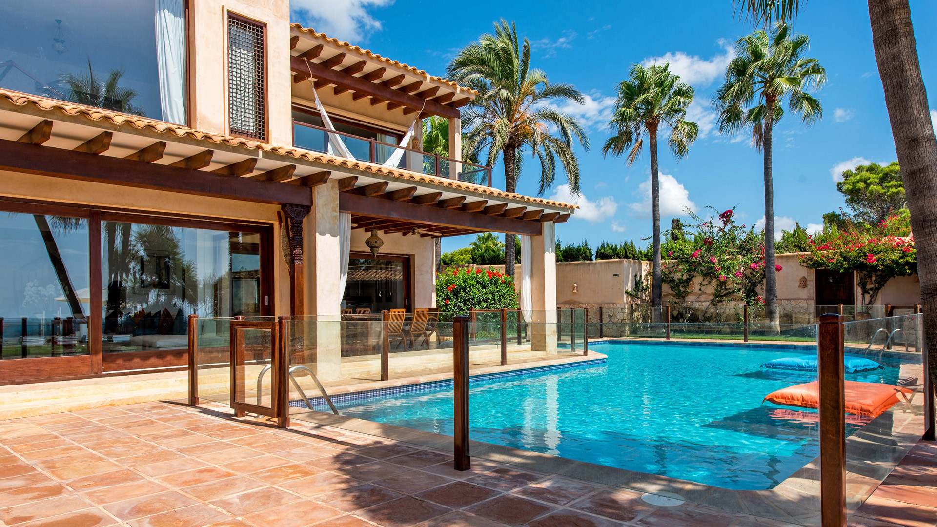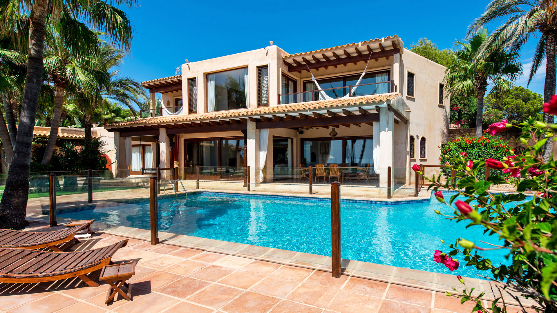 La fantastica posizione in prima linea sul mare nella prestigiosa penisola di Porroig è la prima caratteristica che salta agli occhi nella descrizione di Las Palmeras, una deliziosa proprietà dallo stile tradizionale perfetta per famiglie.