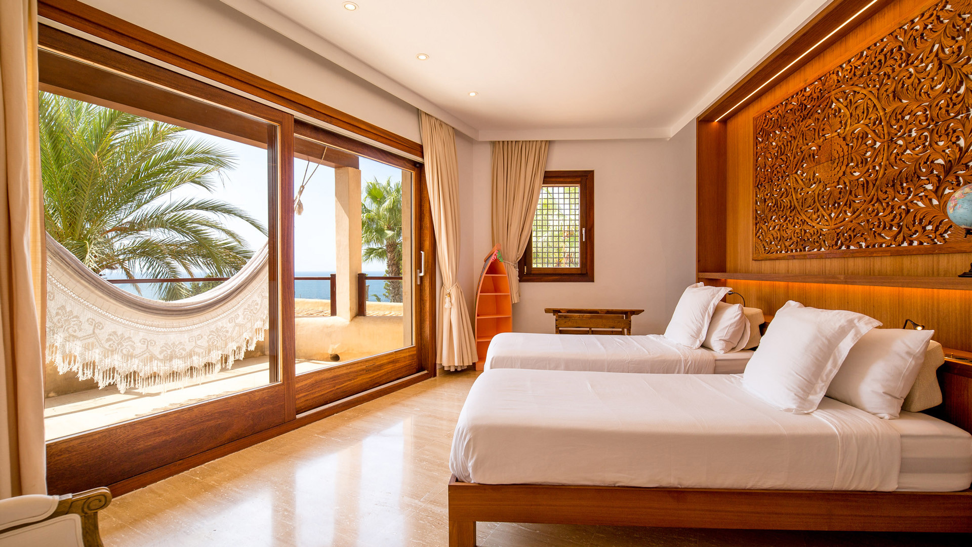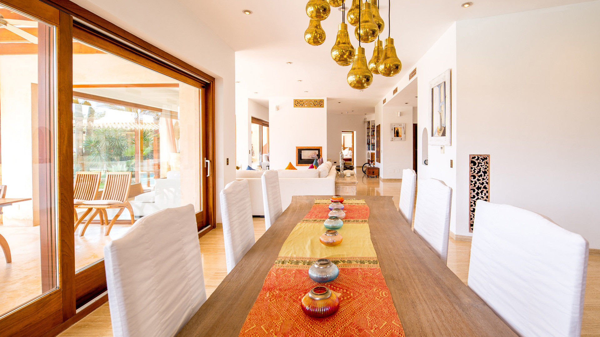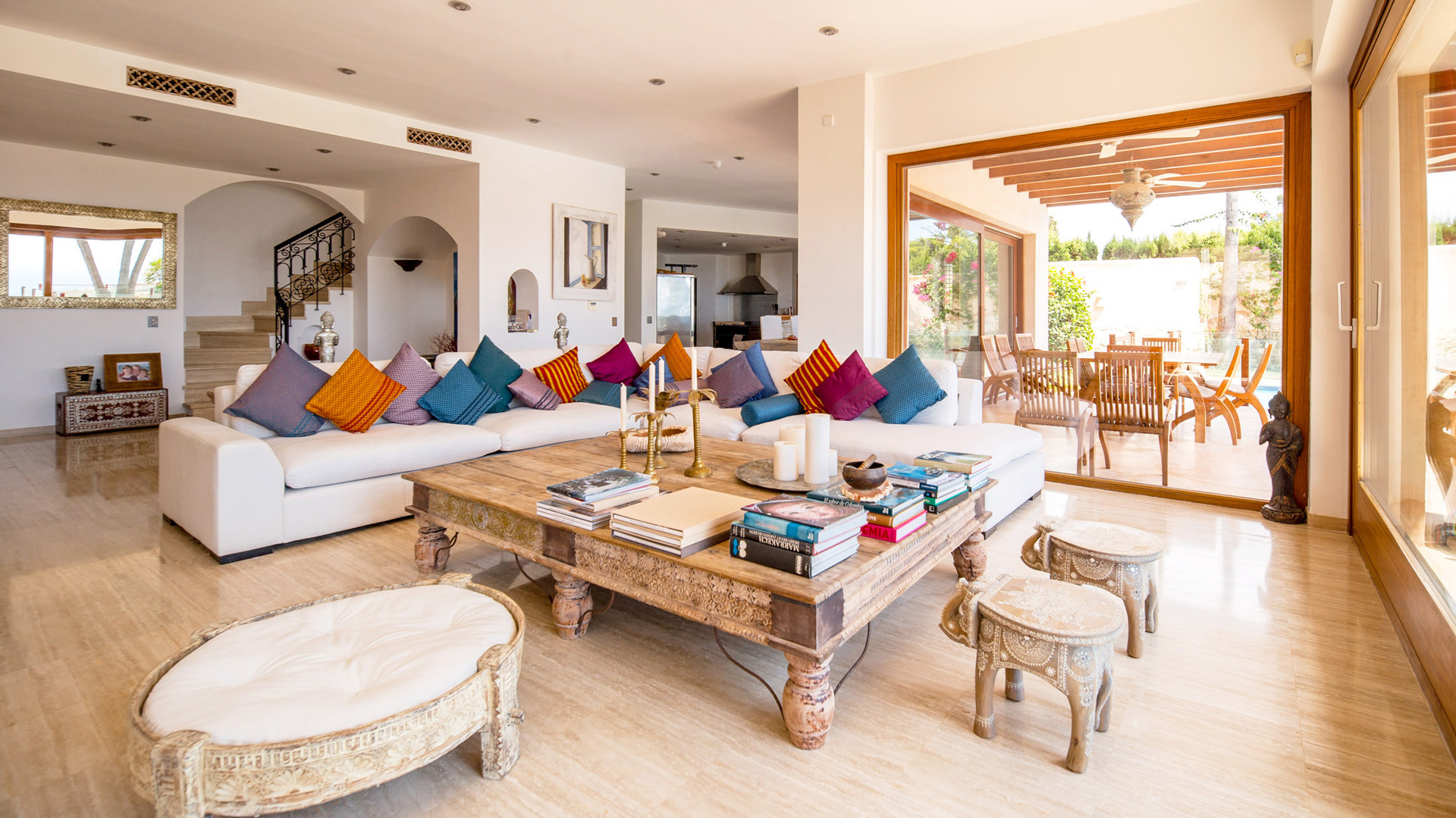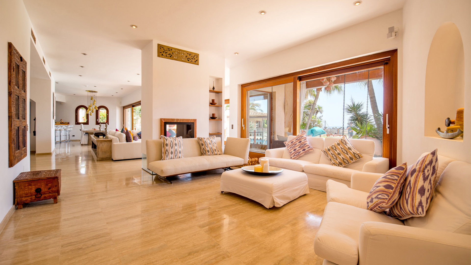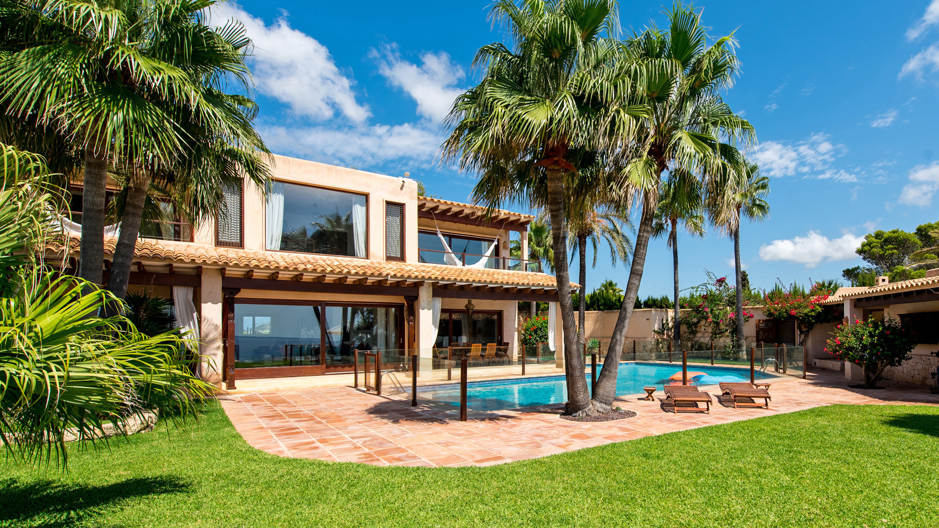 La fantastica posizione in prima linea sul mare nella prestigiosa penisola di Porroig è la prima caratteristica che salta agli occhi nella descrizione di Las Palmeras, una deliziosa proprietà dallo stile tradizionale perfetta per famiglie.