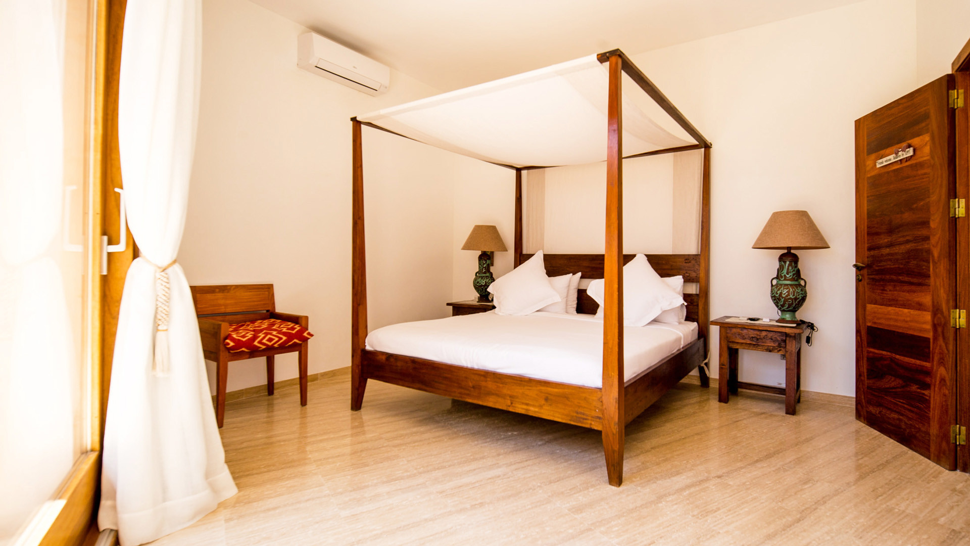 Gli interni sono caratterizzati da uno stile accogliente e tradizionale, volutamente non eccessivamente moderno o stravagante. Abbonda l'uso di materiali naturali, primi tra tutti il legno che dono un certo calore a tutti gli ambienti che risultano particolarmente luminosi grazie alla presenza di ampie orte scorrevoli che favoriscono il contatto diretto con l'esterno. Le camere si dividono tra corpo centrale e guest house, tutte accomunate dallo stesso livello qualitativo.
