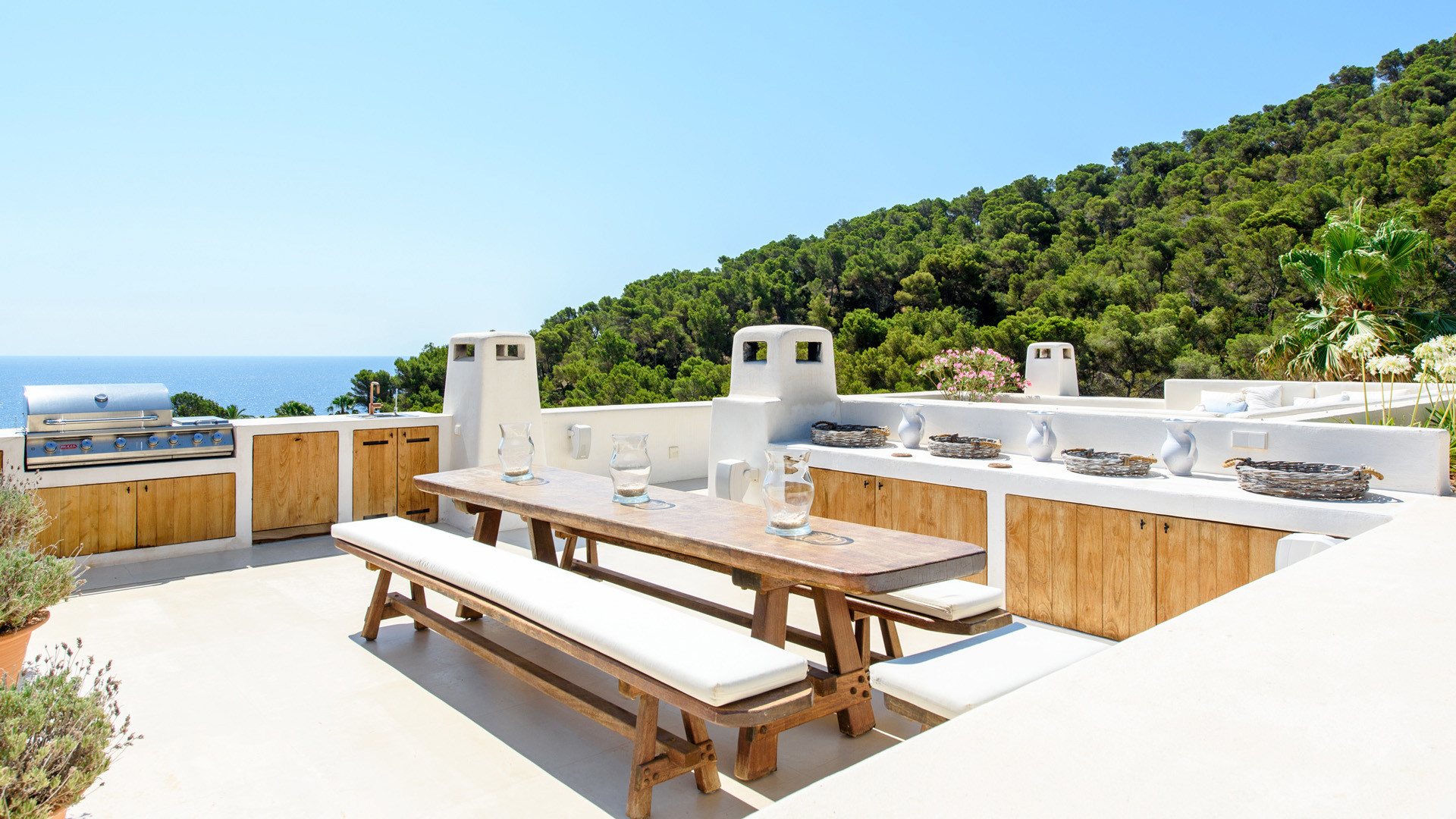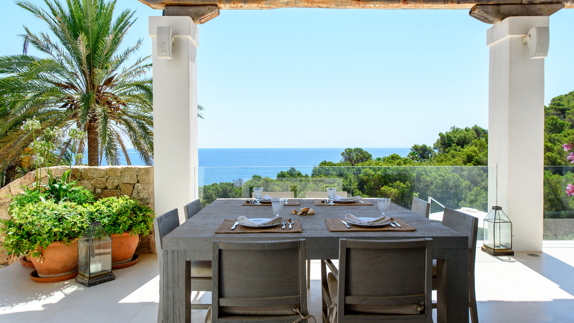 In una magnifica posizione nei pressi di Santa Eulalia, e completamente nascosta tra la vegetazione, troviamo la splendida Leonie, una proprietà perfetta per i viaggiatori dalle alte aspettative, siano famiglie o gruppi di amici. La vista mare con il verde della macchia Mediterranea sullo sfondo è magnifica, mantenendo una privacy assoluta e restando allo stesso tempo a breve distanza dai servizi offerti dalla vicina cittadina di Santa Eulalia.