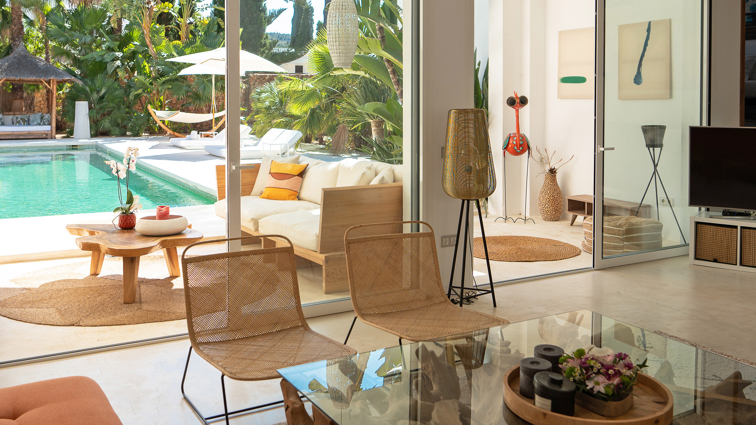 Nella zona di Roca Llisa, adiacente al Campo da Golf e immersa in un lussureggiante giardino tropicale, troviamo Pop, una proprietà dalle connotazioni moderne e chic. Da questa favorevole posizione si raggiungono comodamente i servizi di Ibiza Town e Santa Eulalia, così come ottime spiagge come Cala Olivera, raggiungibile anche a piedi con una passeggiata di circa 2 km, Cala Llonga e Talamanca.