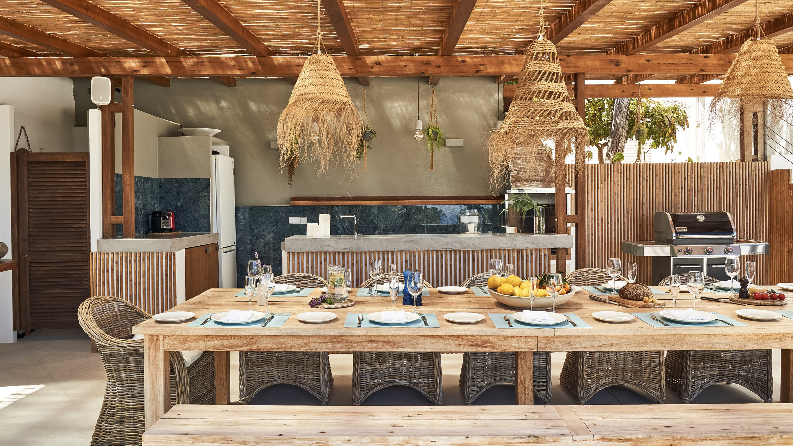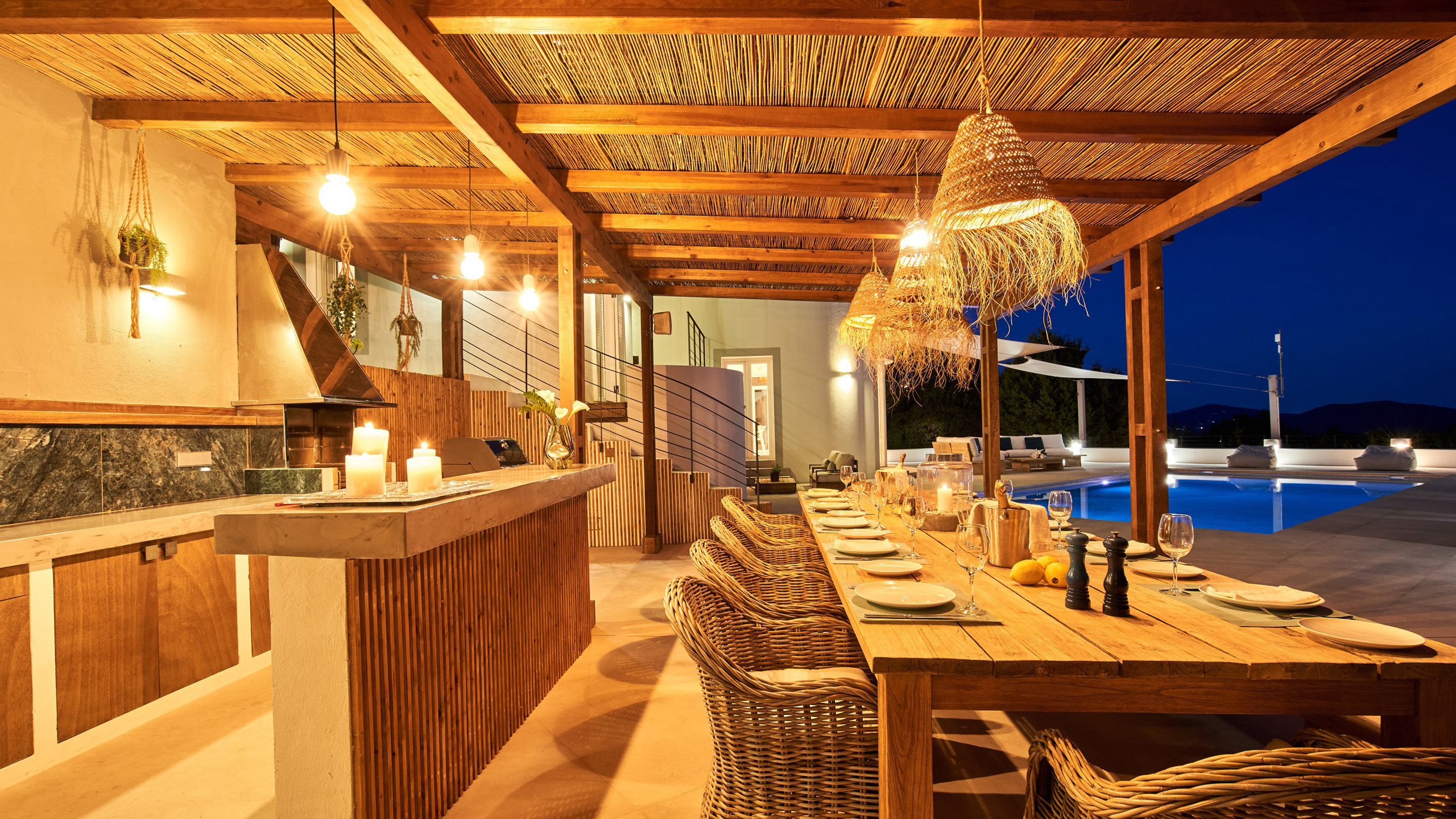 A disposizione degli ospiti troviamo l'immancabile piscina privata e una godibile zona pranzo con cucina esterna, perfetta per rilassarsi e gustare un aperitivo preparato dai nostri cuochi. La terrazza principale è ben posizionata per godere della splendida vista da ogni angolo e dispone di diverse zone relax ben arredate.