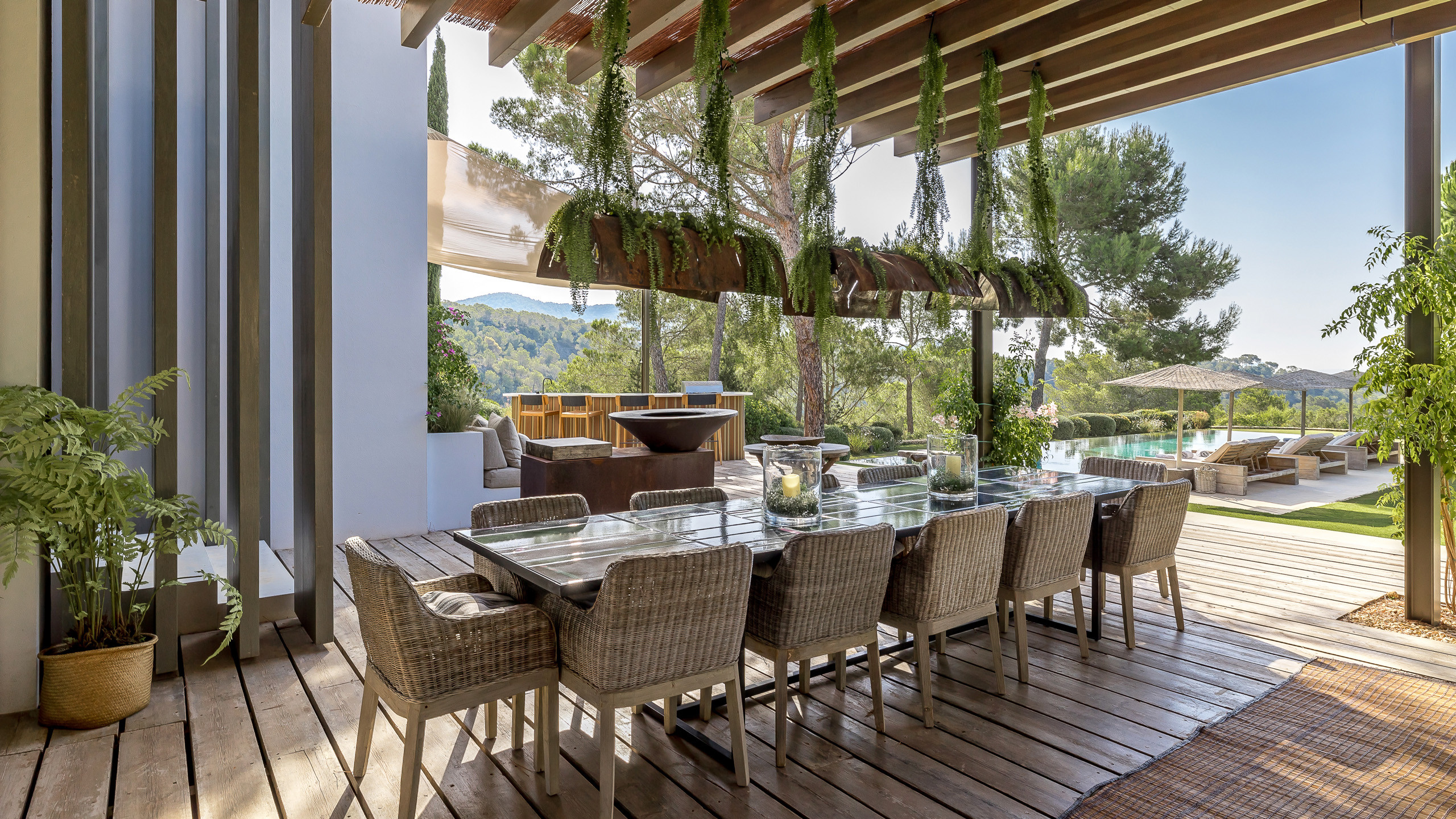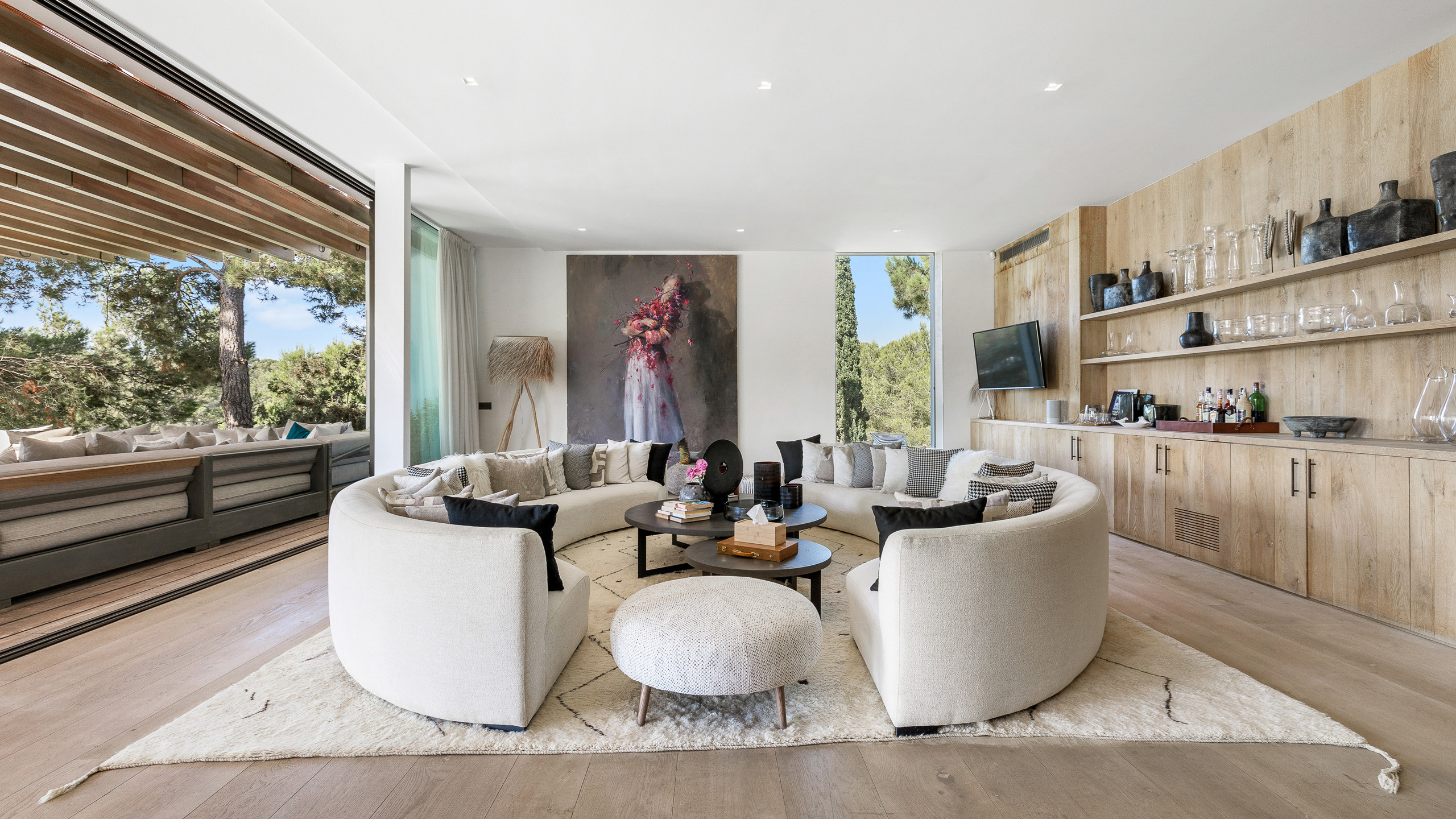 La magnifica Lakota si nasconde tra la vegetazione godendo della massima privacy possibile, restando tuttavia in una posizione strategica, non lontana da note località come Vista Alegre, Cala Jondal o Sa Caleta. La vista ispira pace e serenità, spaziando tra le colline verdeggianti con il mare e Formentera in lontananza sullo sfondo.