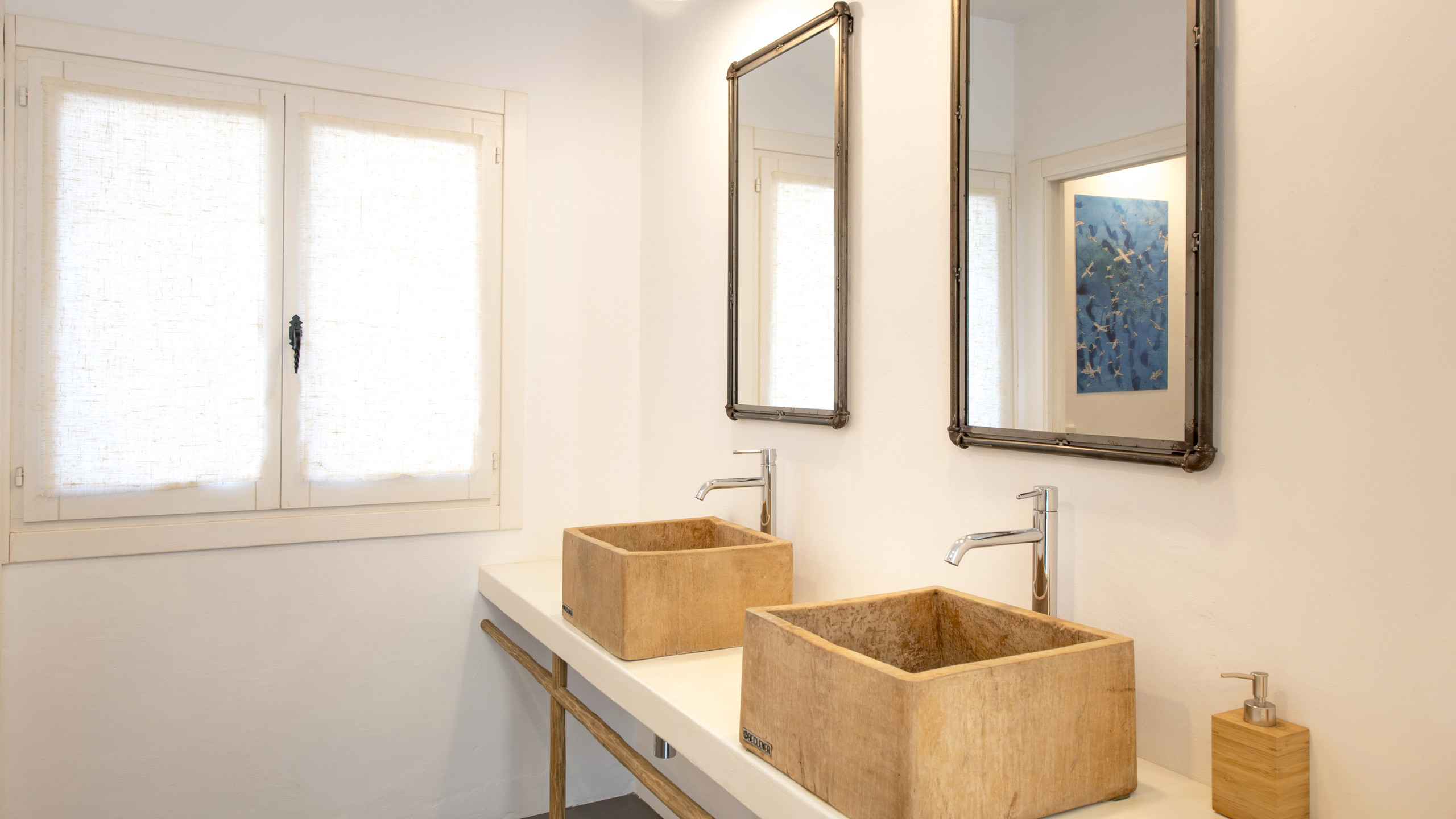 Internamente Miriam mette in evidenza un approccio molto personale, a tratti quasi rustico, ma con un evidente cura verso il dettaglio e uno stile coerente in tutti gli ambienti. Tutta la tecnologia necessaria ad una proprietà di questo livello è a disposizione sia negli ambienti comuni che nelle camere da letto, distribuite tra corpo centrale e vicina casita.