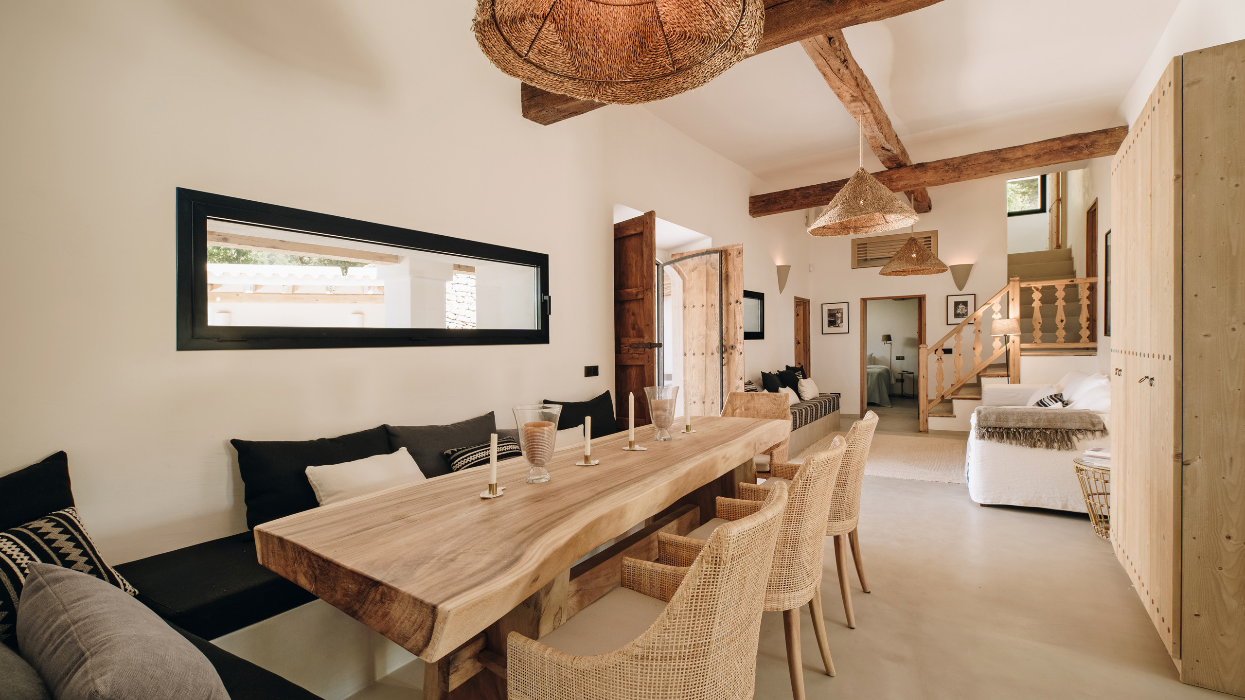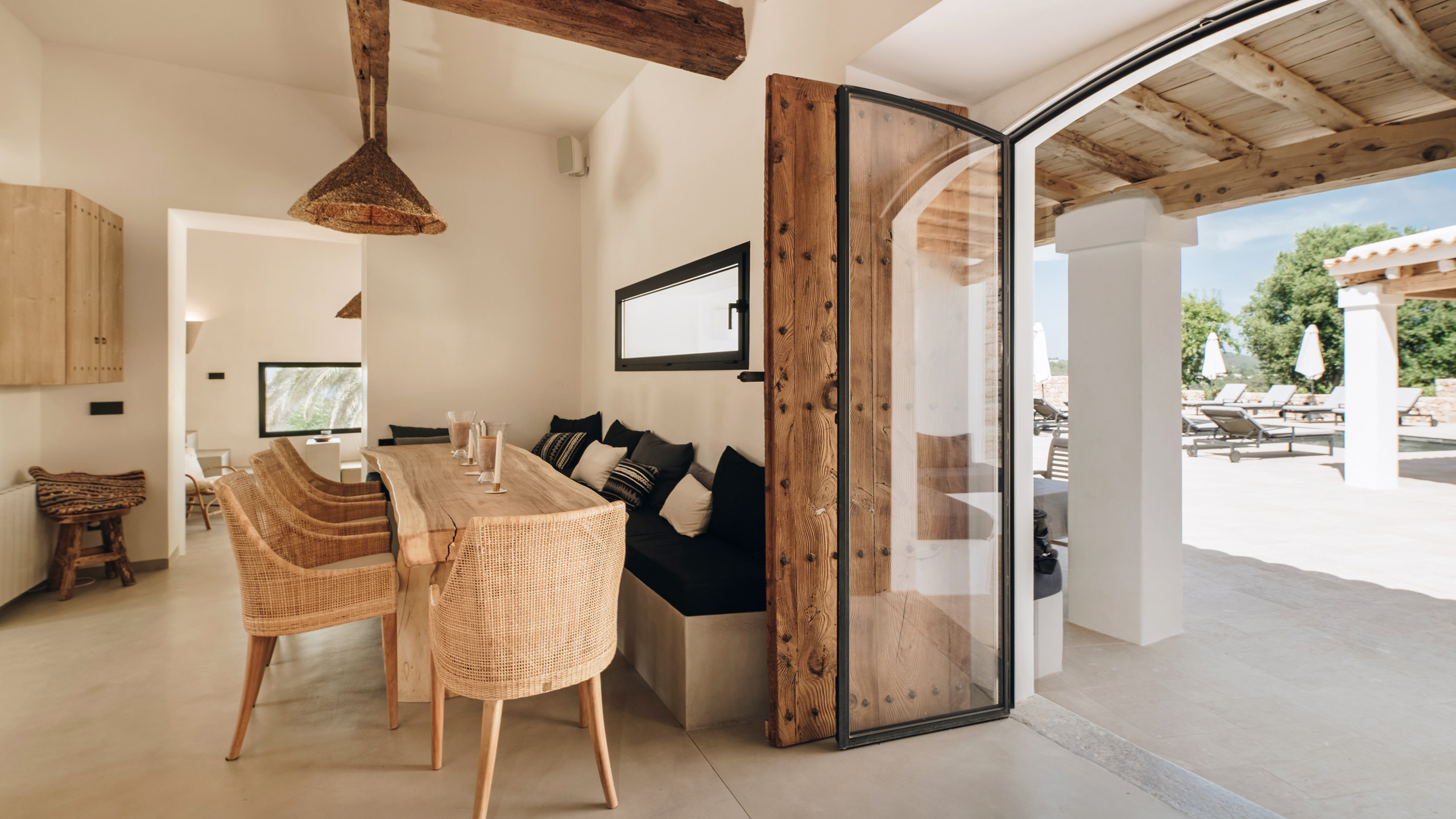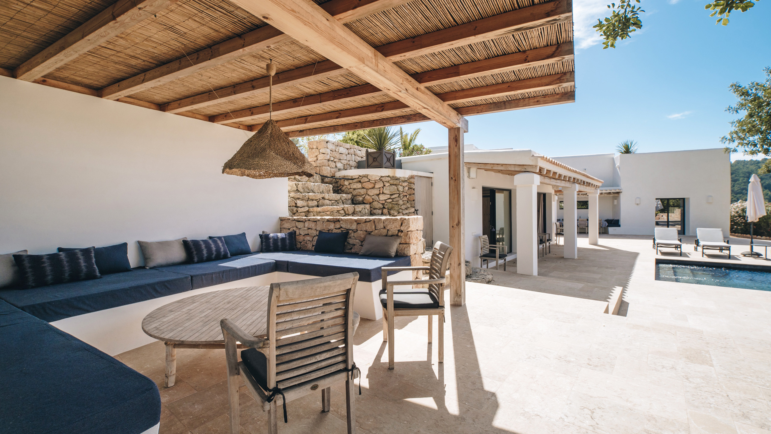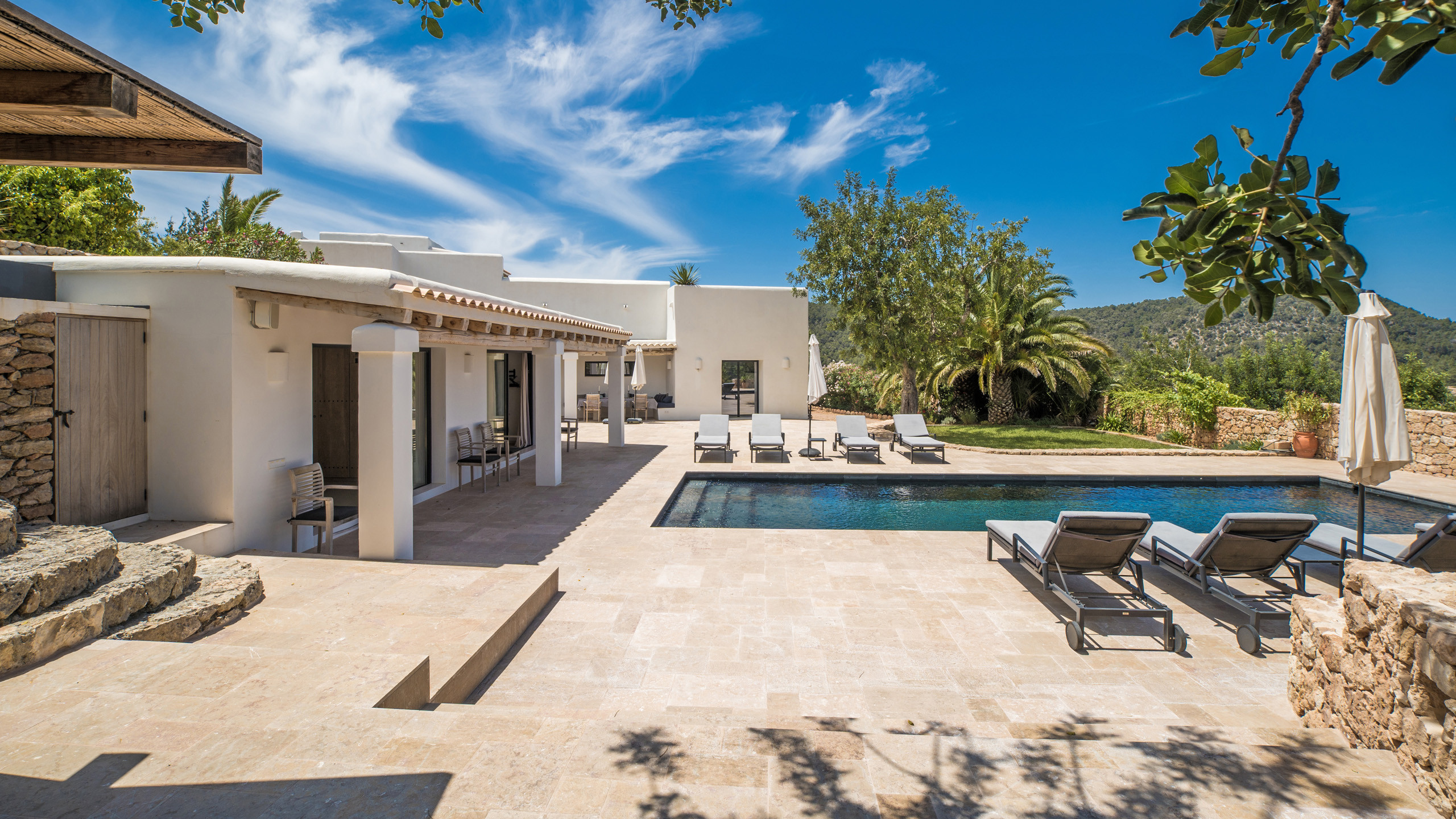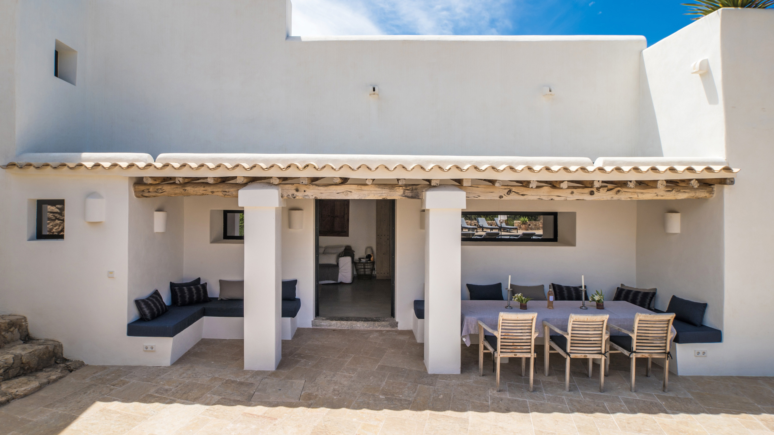 Vergola è una magnifica finca completamente ristrutturata nel 2018 in prossimità di Sant Josep, la proprietà si inserisce perfettamente nel contesto rurale della zona, garantisce un'ottima privacy restando allo stesso tempo in prossimità dei servizi del centro abitato, con una selezione di ottime spiagge tra cui Cala tarda e Cala bassa nel raggio di 10 km.
